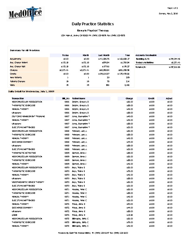 showing the level of productivity of your practice.